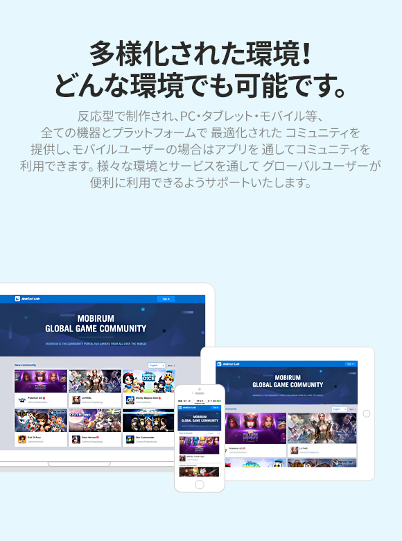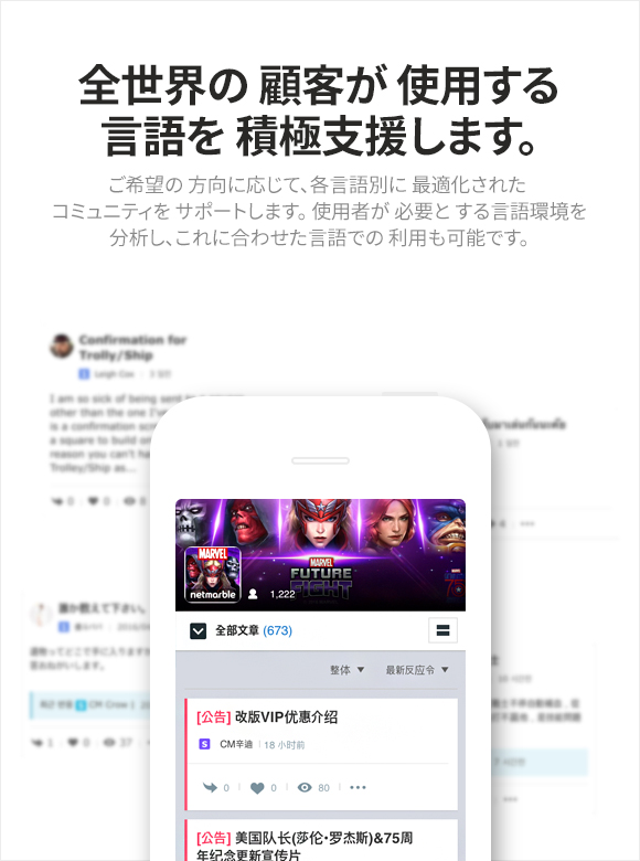 モバイルゲームとグローバル環境で特化されたゲームコミュニティを意味します。